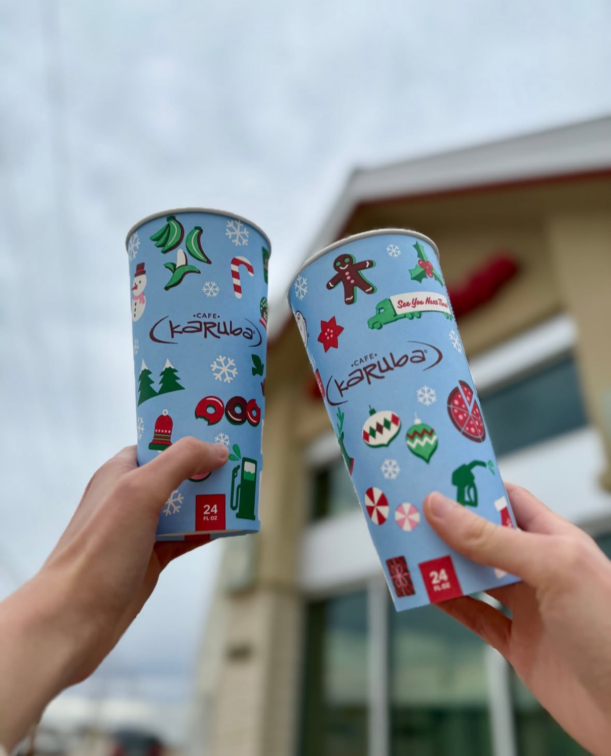 The 24oz cup was featured in all Kwik Trip stores across the Midwest and on their social media pages during the 2025 holiday season. The design combines popular holiday iconography with recognizable Kwik Trip products.